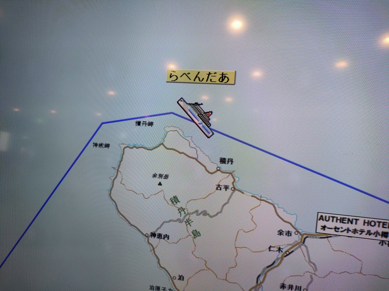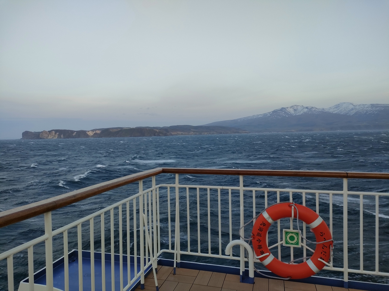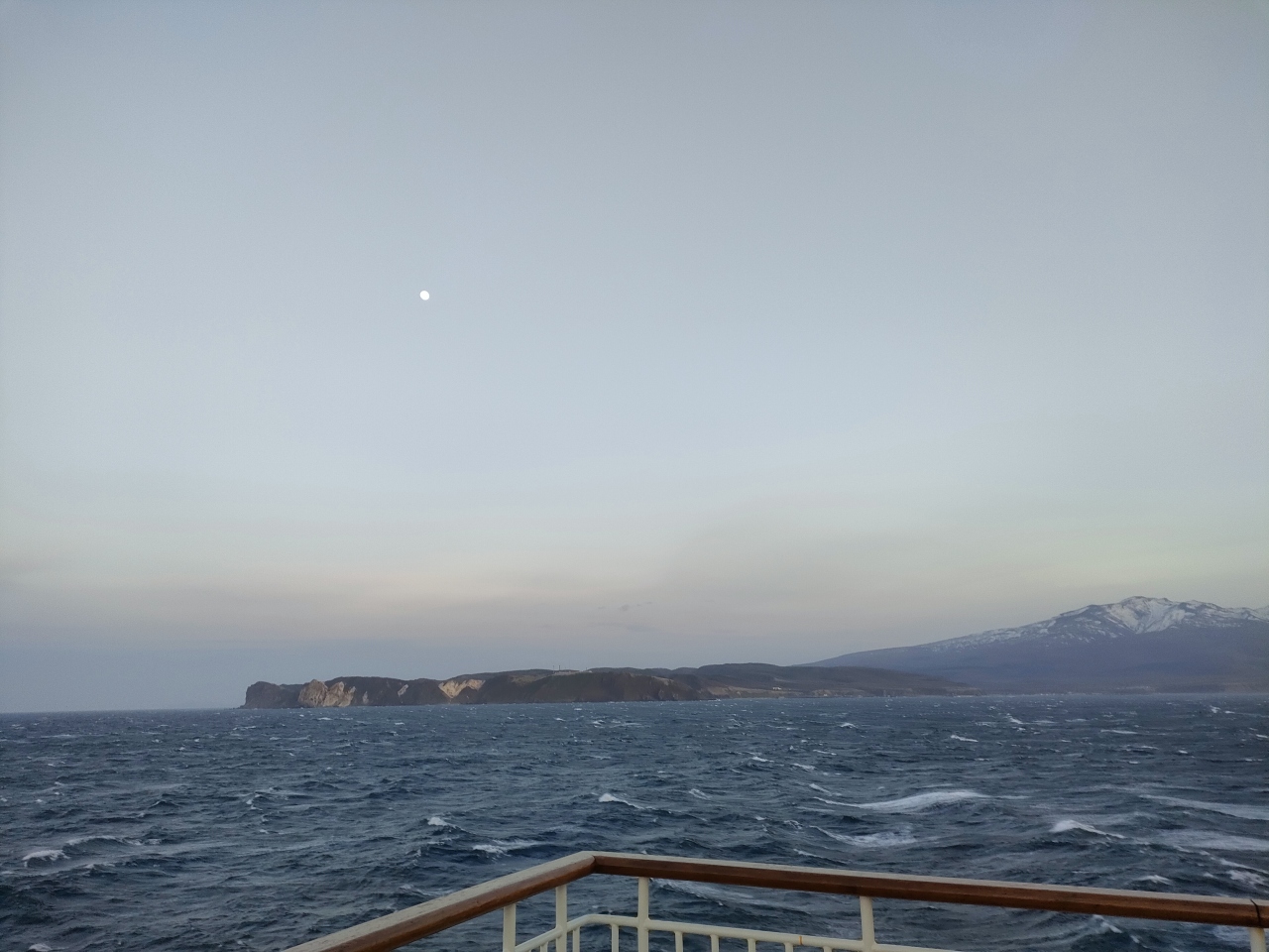おおよそ19時手前くらいで、17時に小樽を出港するフェリーでは、ゴールデンウィーク過ぎくらいから日が伸びて、夕闇の中、波濤の向こうに海岸線の様子を眺められるようになります。