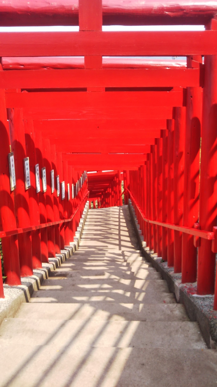 100m以上並ぶ123基の鳥居は10年以上かけて奉納されたものだそうです。有名になり過ぎて、神社というより観光スポットのような賑わい。ですが、青い海と空に連なる鳥居の赤のコントラストはやはり綺麗でした。