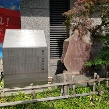 石碑だけ建っており草木で本の少し分かりにくいかった。店のすみにある。