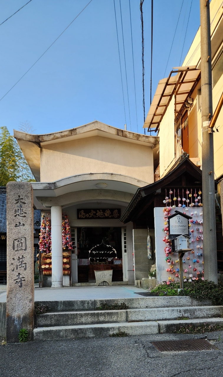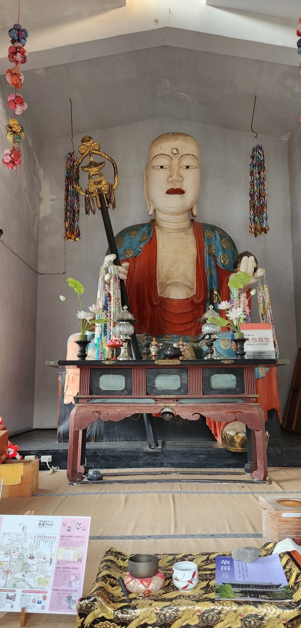 本堂の手前にある御地蔵さまは一般的なお地蔵さまと違いコチラもカラフル、1855年に道後温泉の湯が止まったときに、この地蔵に祈願し再び湯が湧き出たことから「湯の大地蔵」と呼ばれているそうで必見です。