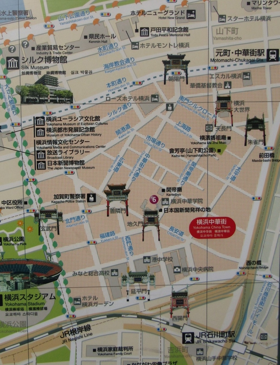 みなとみらい線・元町中華街駅から徒歩3分ほど、朝陽門や善隣門などの門に囲まれた一角を指します。