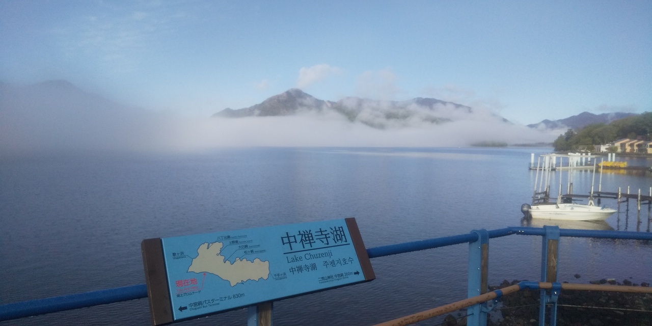 日本三名爆「華厳の滝」の源の湖。滝はこの中禅寺湖東端から流れ落ちています。