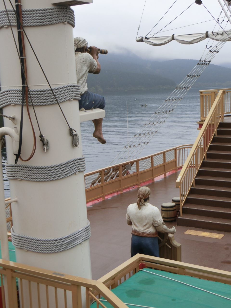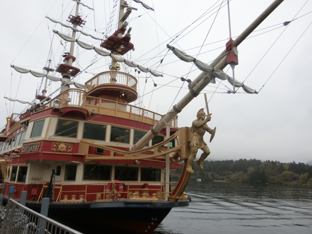 曇天の中の海賊船でしたが、それはそれで幻想的な芦ノ湖を堪能することができました。