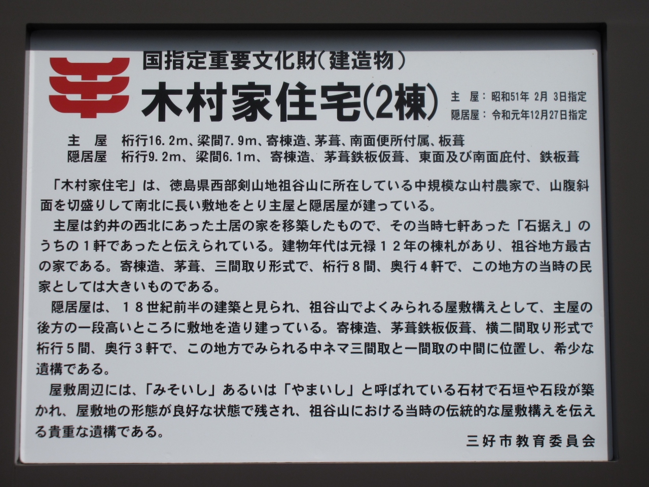 300年以上前、元禄12年に建てられた、祖谷地方最古の典型的な山間部民家です。国指定重要文化財に指定されています。