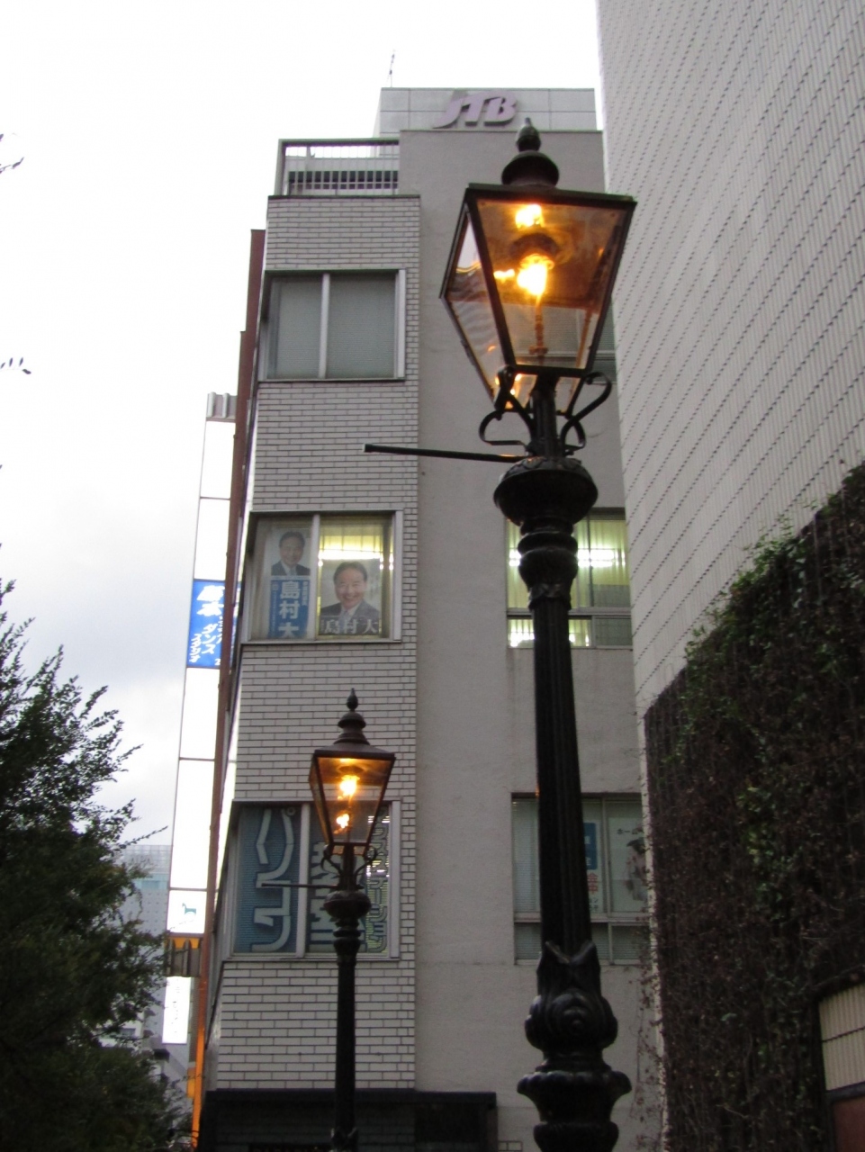 隣にある案内板には、「一部を英国から輸入し、1872年に日本で初めてガス灯が点灯された」とありました。