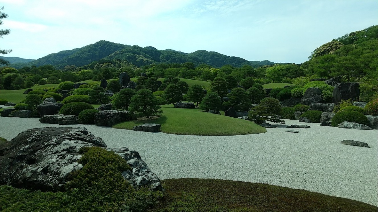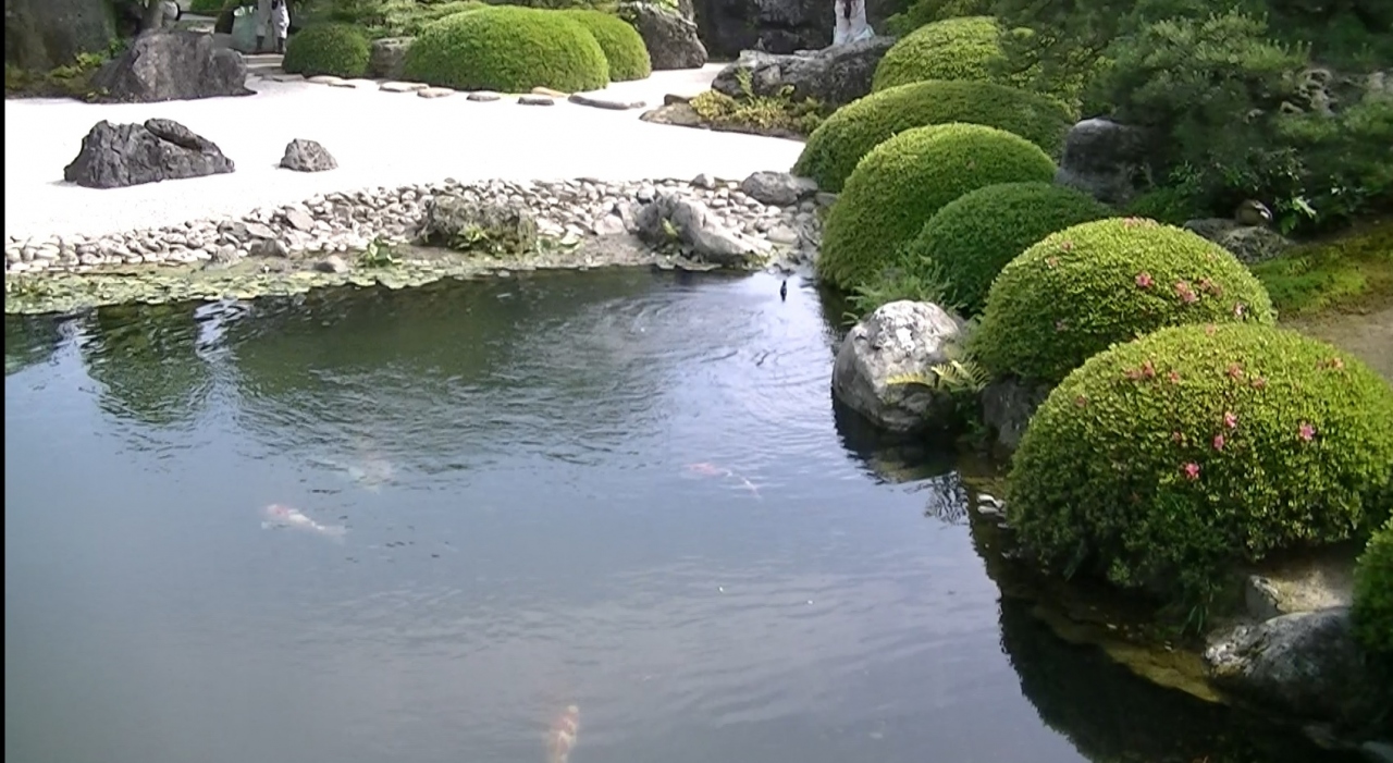 GW明けの5月の金曜日、14時半、足立美術館に到着。順路に従ってまず庭園美を楽しむ。新緑が目に美しい。庭園の四季の写真が飾ってあったが、秋の紅葉も実に美しいようだ。冬の雪景色も素晴らしいが、交通が問題だ。今は丁度ツツジが咲くころだが、ここの庭園には意外とツツジも含めて花が少ない。庭園の築山に「亀鶴の滝」という人工の滝が設えてある。説明によれば「那智の大滝」を模しているというが、所詮人工の山の人工の滝だから、那智の大滝の大自然のスケールの大きさとは比べるべくもない。それを模したというのは笑止千万、身の程知らずというべきだろう。それ以外は、錦鯉がいる池庭と言い、白砂青松庭とか庭園日本一を謳うだけの美しい庭園美を楽しむことができる。