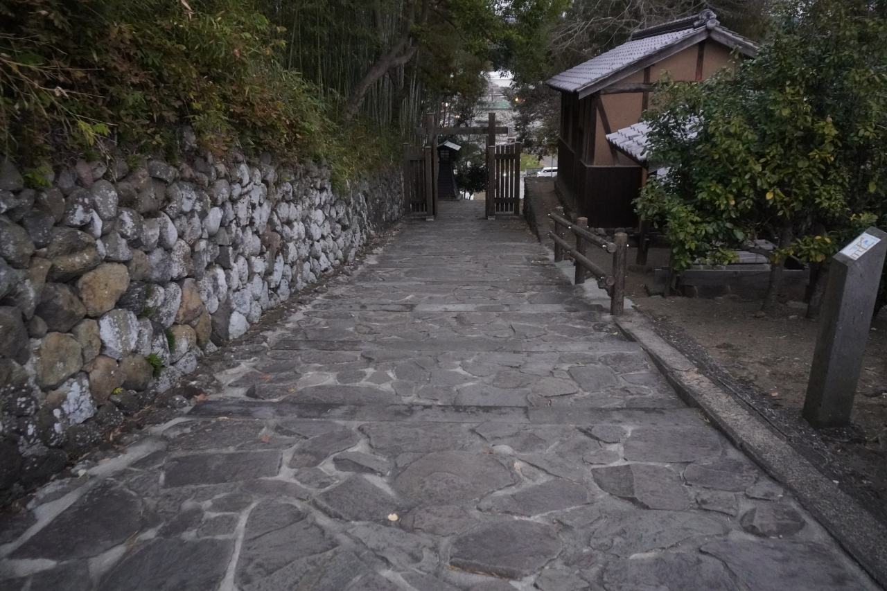 杵築は城下町なのですが、武家屋敷が並ぶのは北台と南台という二つの馬の背のような丘の上。町人の住むのはそのふもとです。ということで、その馬の背に上がっていくための坂がいくつもあって、番所の坂もその一つ。北台武家屋敷に通じています。杵築城下にあった6か所の番所のひとつ、北浜口番所があったので番所の坂。関所のような門があるのが特徴です。