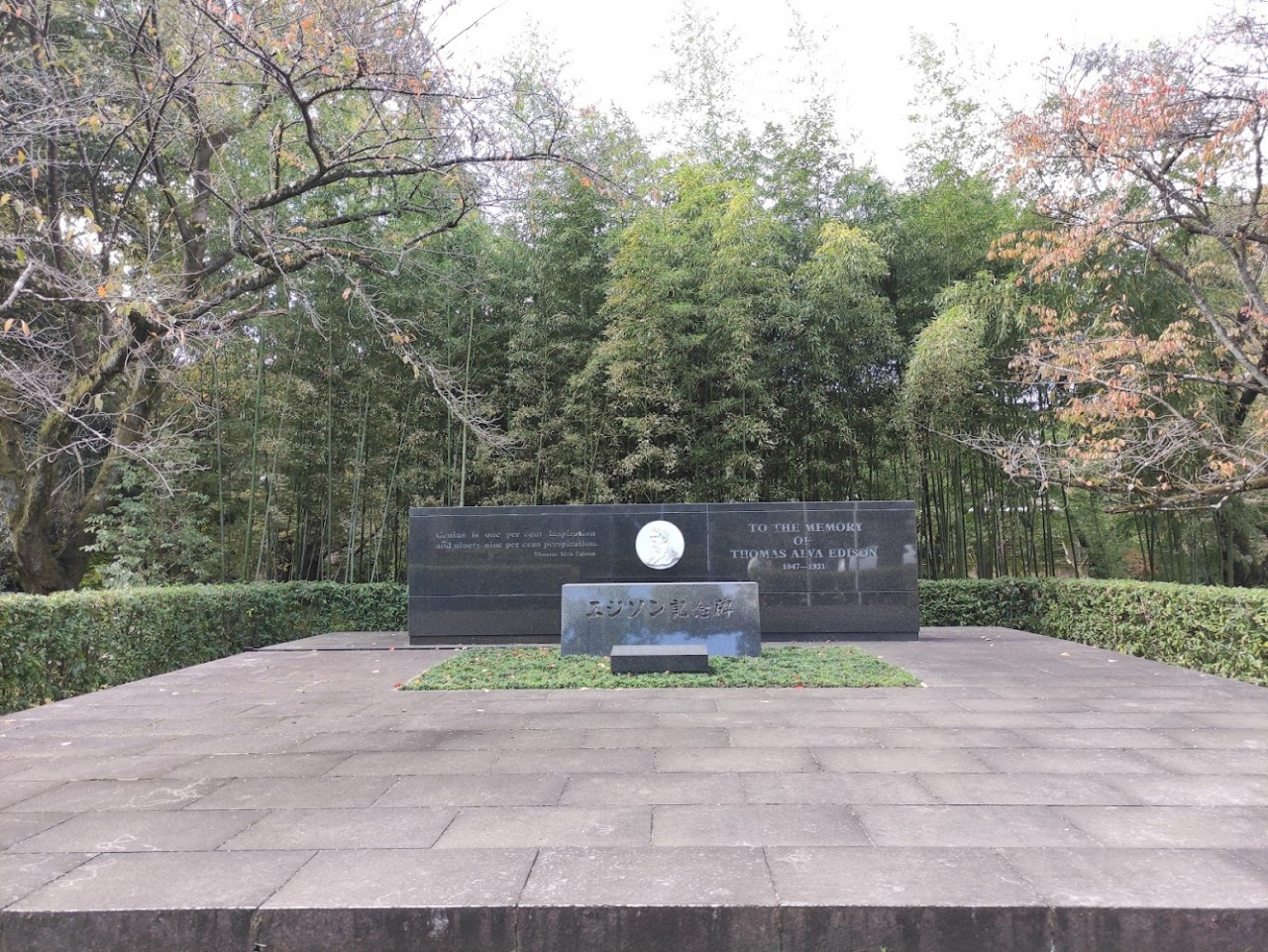アメリカの発明王のエジソンが、電球のフィラメントの素材として、世界中の竹から、ここの竹を使用したことを記念した碑となります。とても大きな碑で石碑の前のスペースが広いのですが、どうやら年数回お祭りがあるそうです。