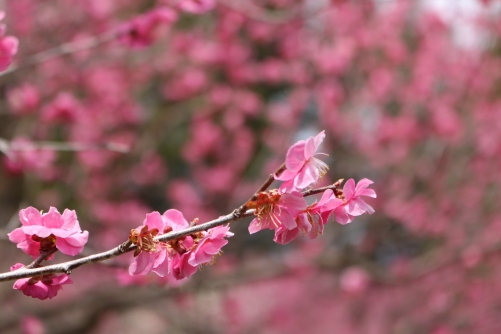 桜の名所で有名ですが、なかなかその時期に行くことができず。でも今回は、第三鳥居の近くで桜が咲き始めており、梅林で梅が見られました。
