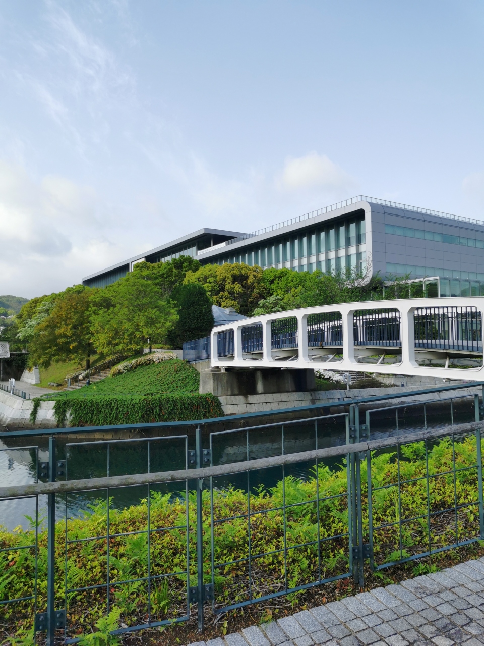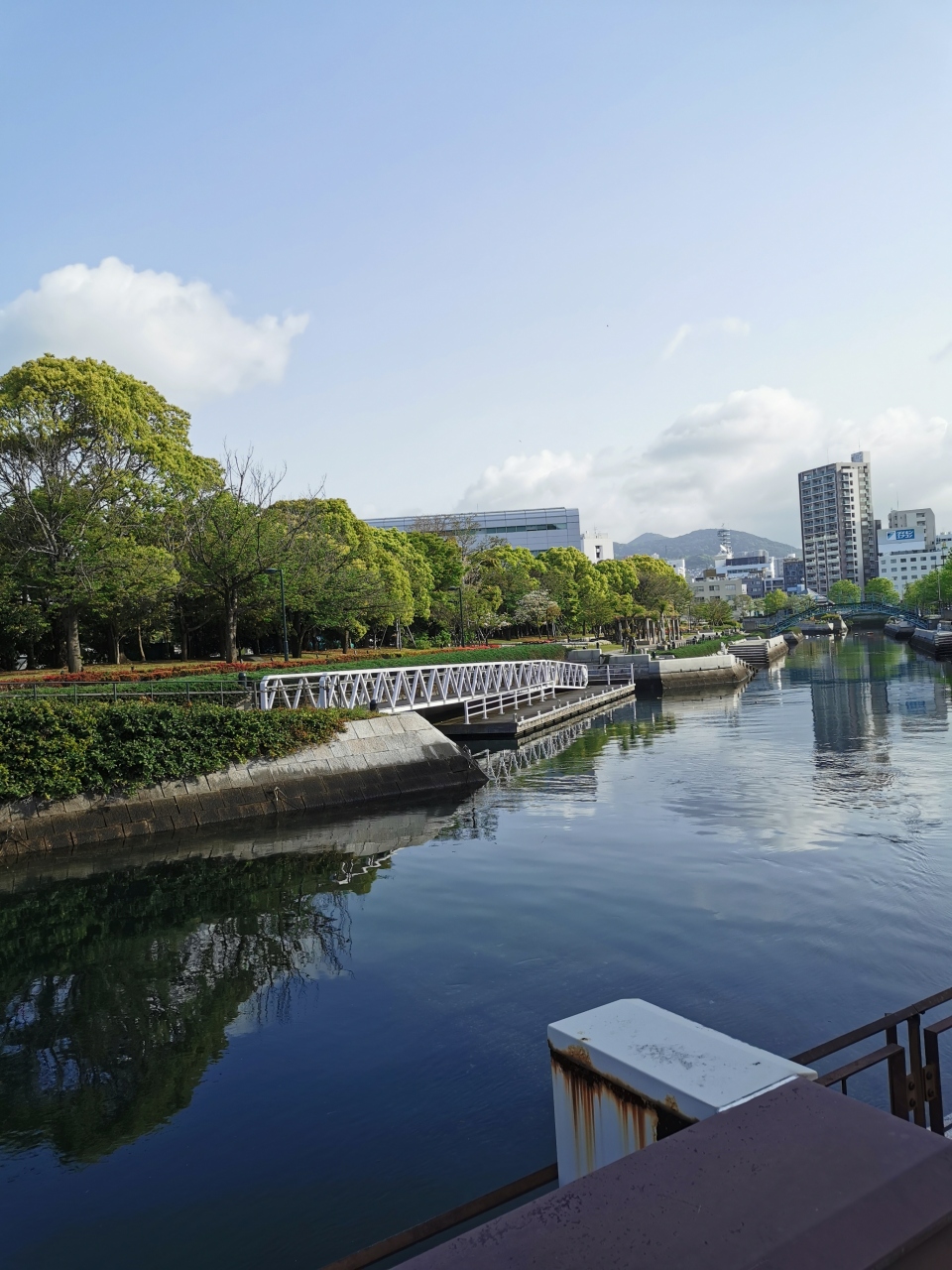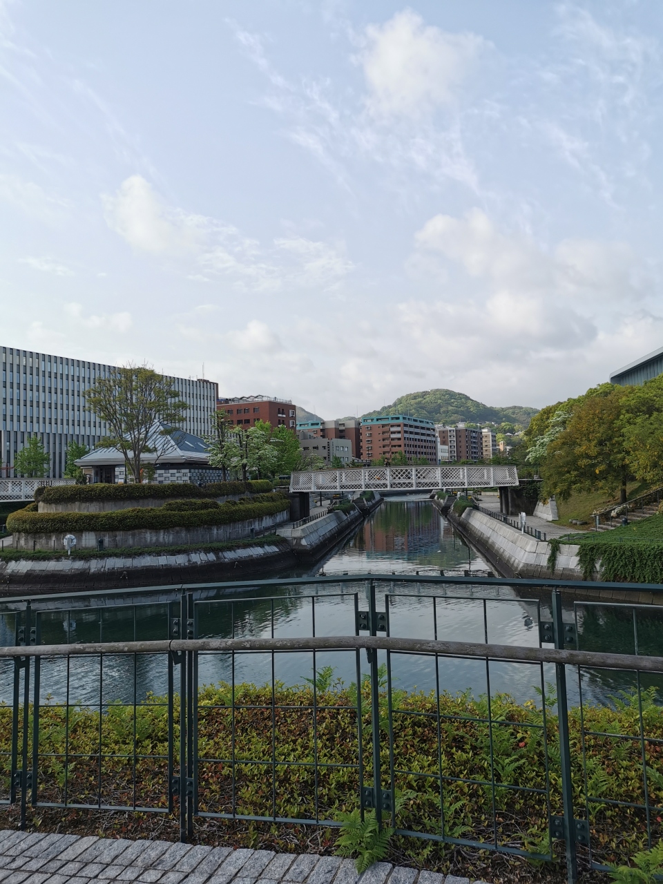 長崎水辺の森公園は長崎港に面した広大な公園でした。海岸通り沿いは水辺のプロムナードとなっていて、運河の水と緑と綺麗に咲いた花がとても綺麗な公園です。公園利用者向けの広い駐車場も完備。公園の海側から対面の三菱造船などがはっきりと見えます。散歩の方、観光の方など、午前中でしたが人は多かったですね。