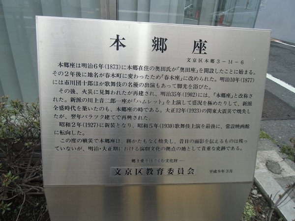 さらに明治35年(1902)には当時の東京市本郷区の区名を採り本郷座と改称しました。