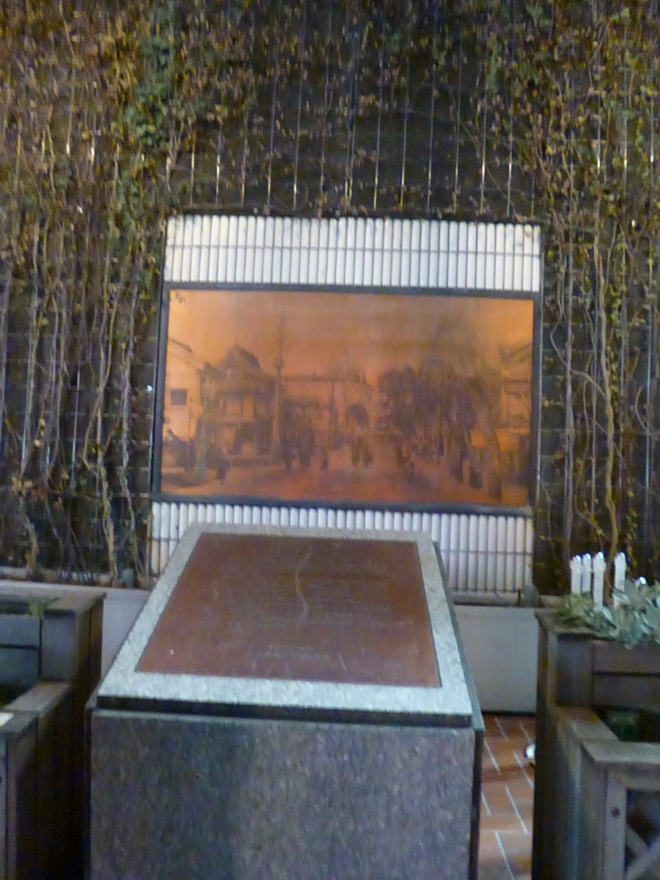 馬車道通りはフェスティバルが開かれていて、特に関内ホールの前ではジャズの生演奏が行われていて人だかりができていました。その関内ホールの外壁にこの記念碑があります。当時の型をモデルとしたガス灯も復元設置されていました。説明によると、ガスを燃やすことで光を放っていたので当時は赤い灯だったそうです。