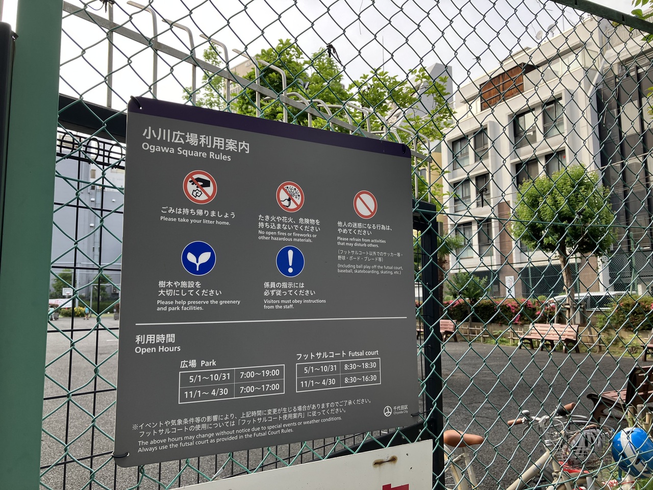 神田小川町にはスポーツ用品を扱うお店が軒を連ねています。大通りにあるビクトリアの横にある角を曲がり少し歩くと小川広場があります。神田カレーグランプリの会場にもなっているそうで、以前訪れた時にはスポーツ用品店のイベントが開かれていました。今回訪れたときはイベントの開催はなく、子供たちが遊んでいました。