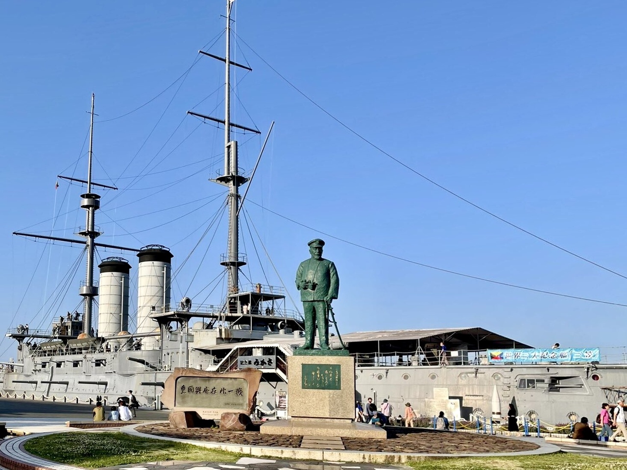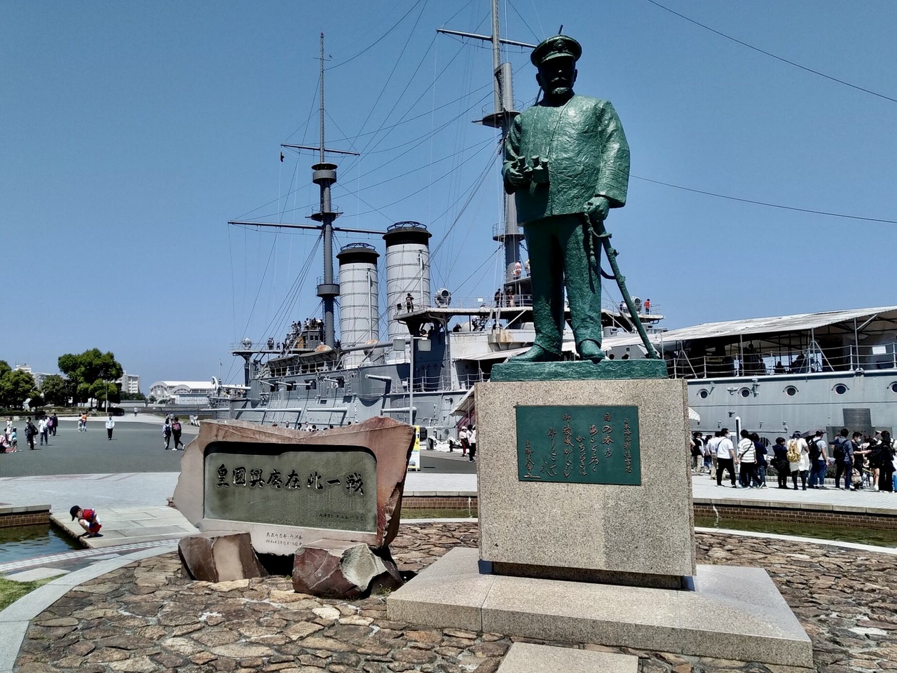 仕事で、横須賀に初めて来たので、戦艦三笠を見に行きました。日露戦争で、連合艦隊の旗艦であった戦艦三笠の前には、それに乗艦していた東郷平八郎司令艦長の銅像がありました。東郷平八郎は、日露戦争乃日本海海戦で、世界屈指を誇ったロシアのバルチック艦隊を破り、日本を勝利に導いた人物ですね。