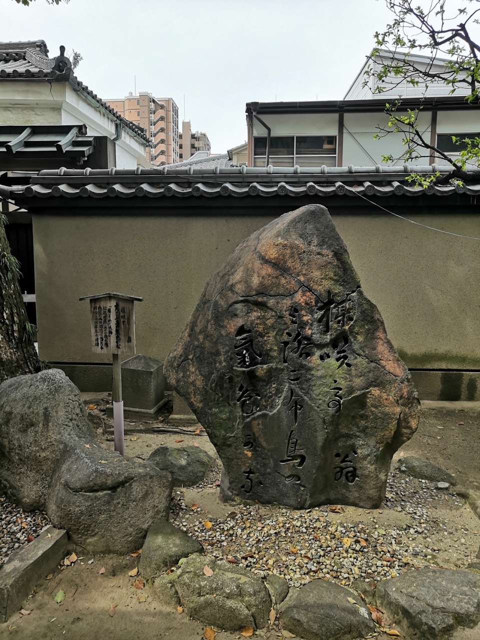 大阪天満宮には芭蕉の句が2か所あります。境内の西側の小高い場所にあるほうはすぐわかりましたが、もう一つは少し探しました。本殿の裏側のほうにある白米社にありました。境内の案内の看板にでも場所がかいてあるといいですね。