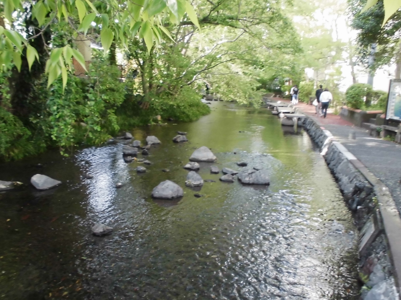 三島市に流れる源兵衛川には川の中に入ることができます。この川沿いには歩道があるのでそこからきれいな水を確認することも可能。実際に見てみるときれいなのが直接確認できます。川が多い三島ですが、ここまで近づけるのはそんなにないです。