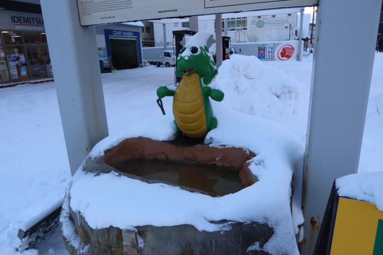 洞爺湖温泉街にある唯一のガソリンスタンド(アポロステーション洞爺湖温泉SS)の敷地内に設置されています。