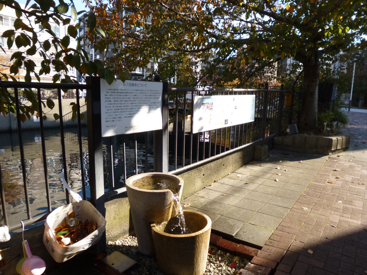 日ノ出町駅近くの長者橋から大岡川の北側を黄金町方面へ向かっていくと、日ノ出湧き水があります。石の桶のようなものから水が流れているのですが、都会のちょろちょろとした湧き水というのではなく結構な水量で驚きました。歴史的に由緒あるもので古くから地域の生活用水として広く利用されていたそうです。