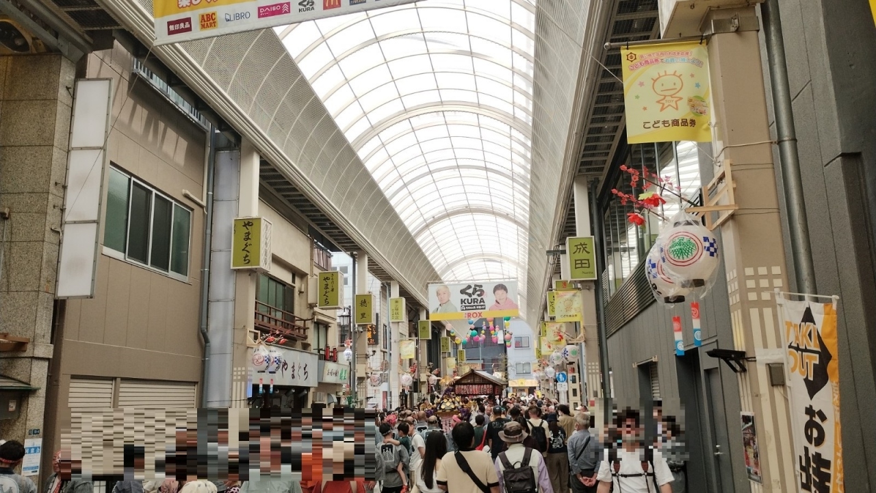 4年ぶりの本格開催ということで、街中や町会内は非常に盛り上がっていました。日本人の観光客はもちろん、多くの外国人観光客も来ており、大混雑でした。このお祭りが始まると、夏が来た感じになります。3日間開催されます。
