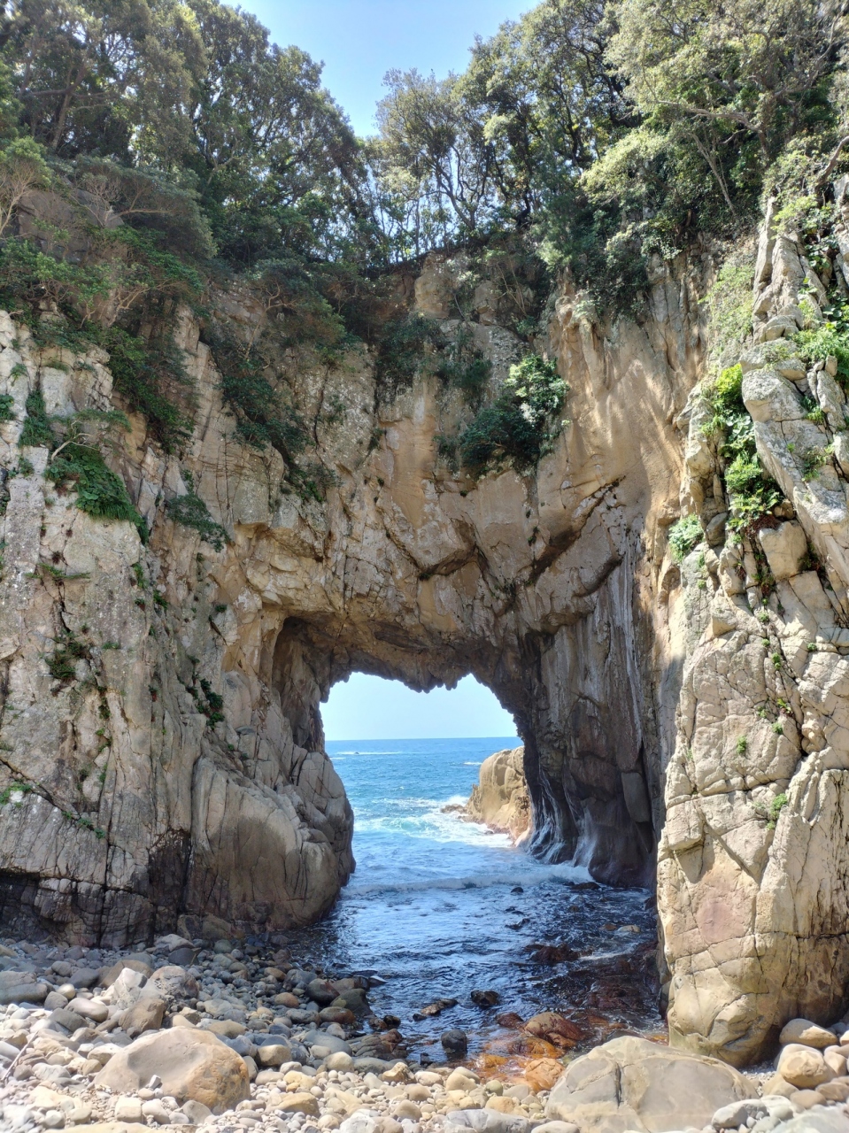 万次郎足湯の展望席からも見えますが、ここは頑張って海岸まで降りましょう。白山洞門の迫力ある姿を間近に見ることができます。