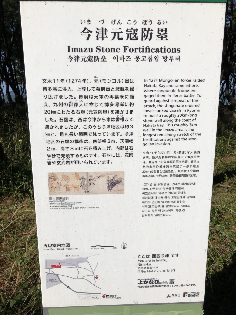 他の防塁跡と違い規模が大きいのと復元してる石塁の箇所が鎌倉武士の時代を思い起こさせますし何よりも海が直ぐ傍なので臨場感たっぷりです。