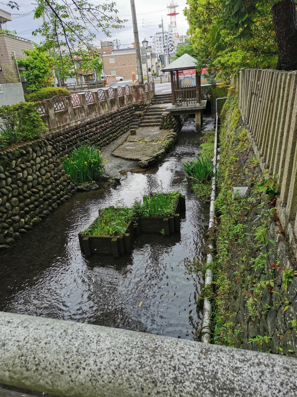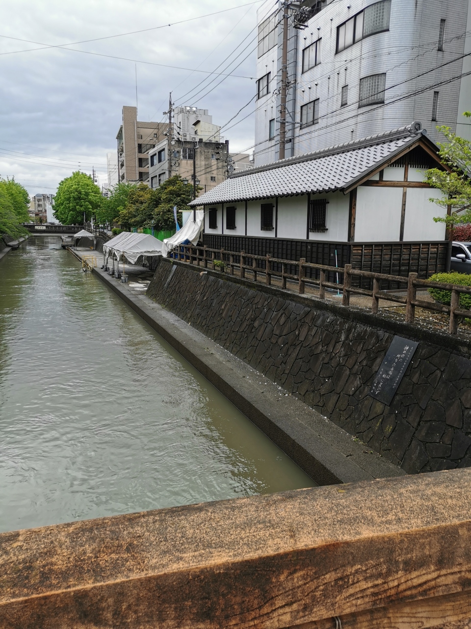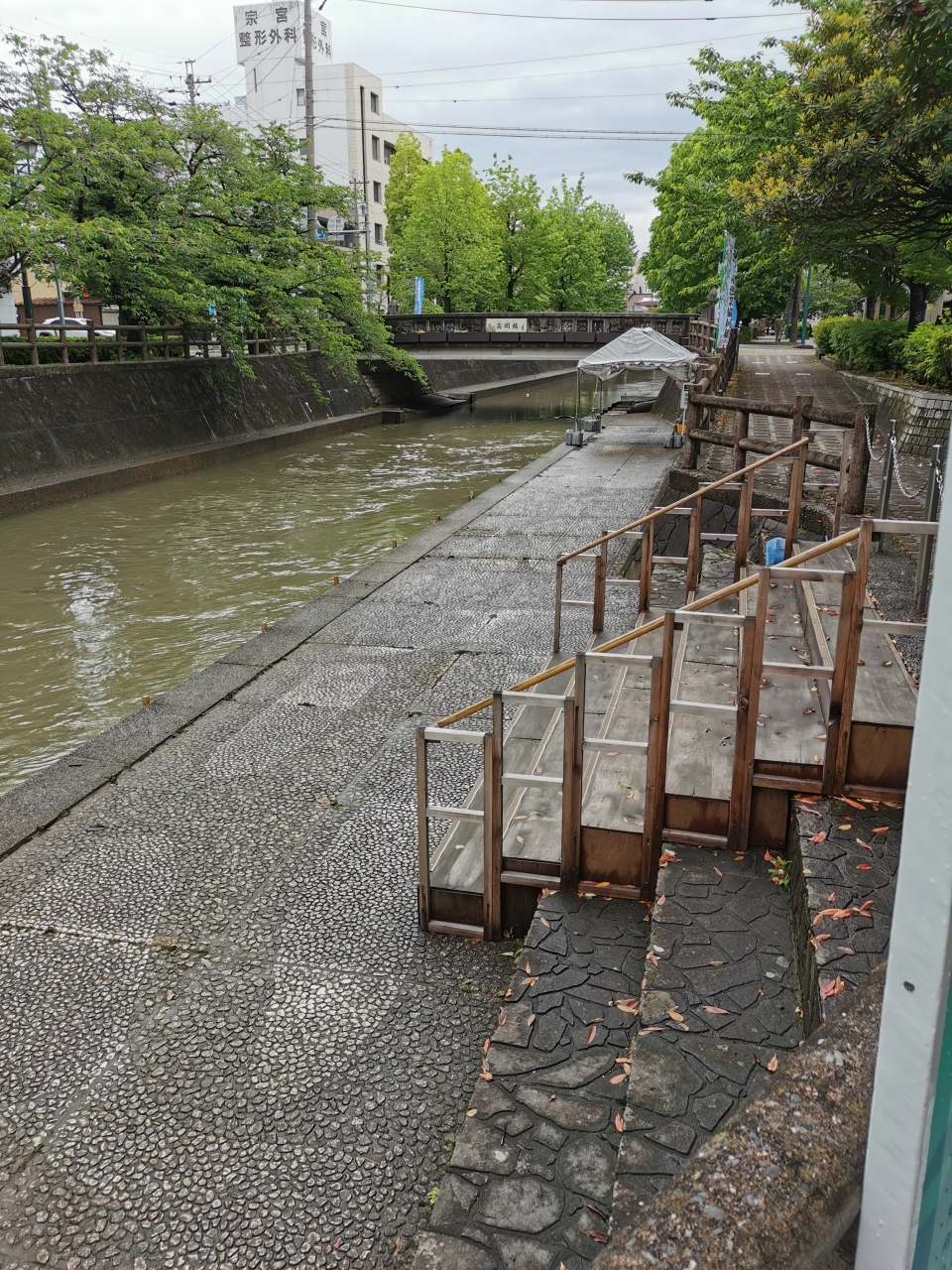 水の都大垣観光で楽しみにしていた「おおがきたらい舟」。欄干に龍の彫り物がある龍の口橋の近くにたらい船乗船場があります。たらい舟は、関ケ原の戦いの際、山田去暦の娘「おあむ」がたらいに乗って大垣城から脱出したというお話しにちなんでいるものです。訪問前夜に大雨がふって、当日も小雨がしとしと。川が増水していて運行中止でした。誠に残念です。