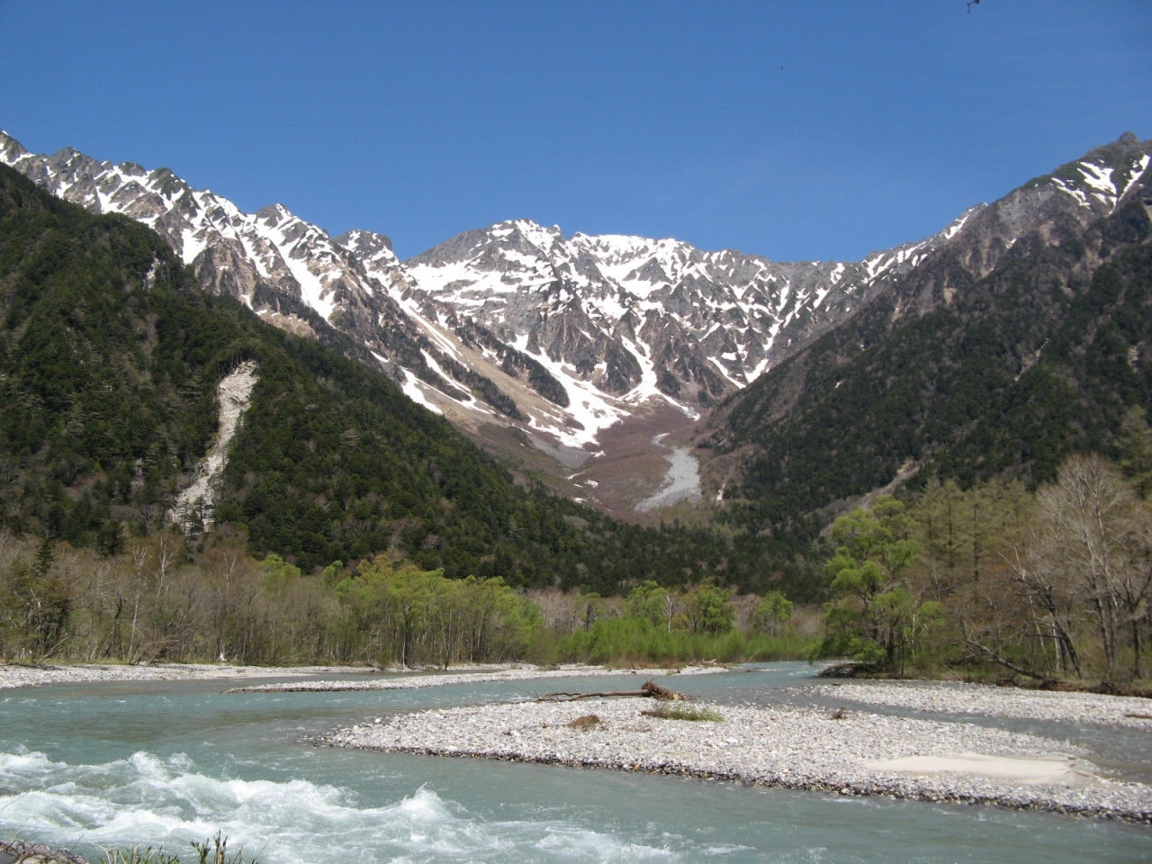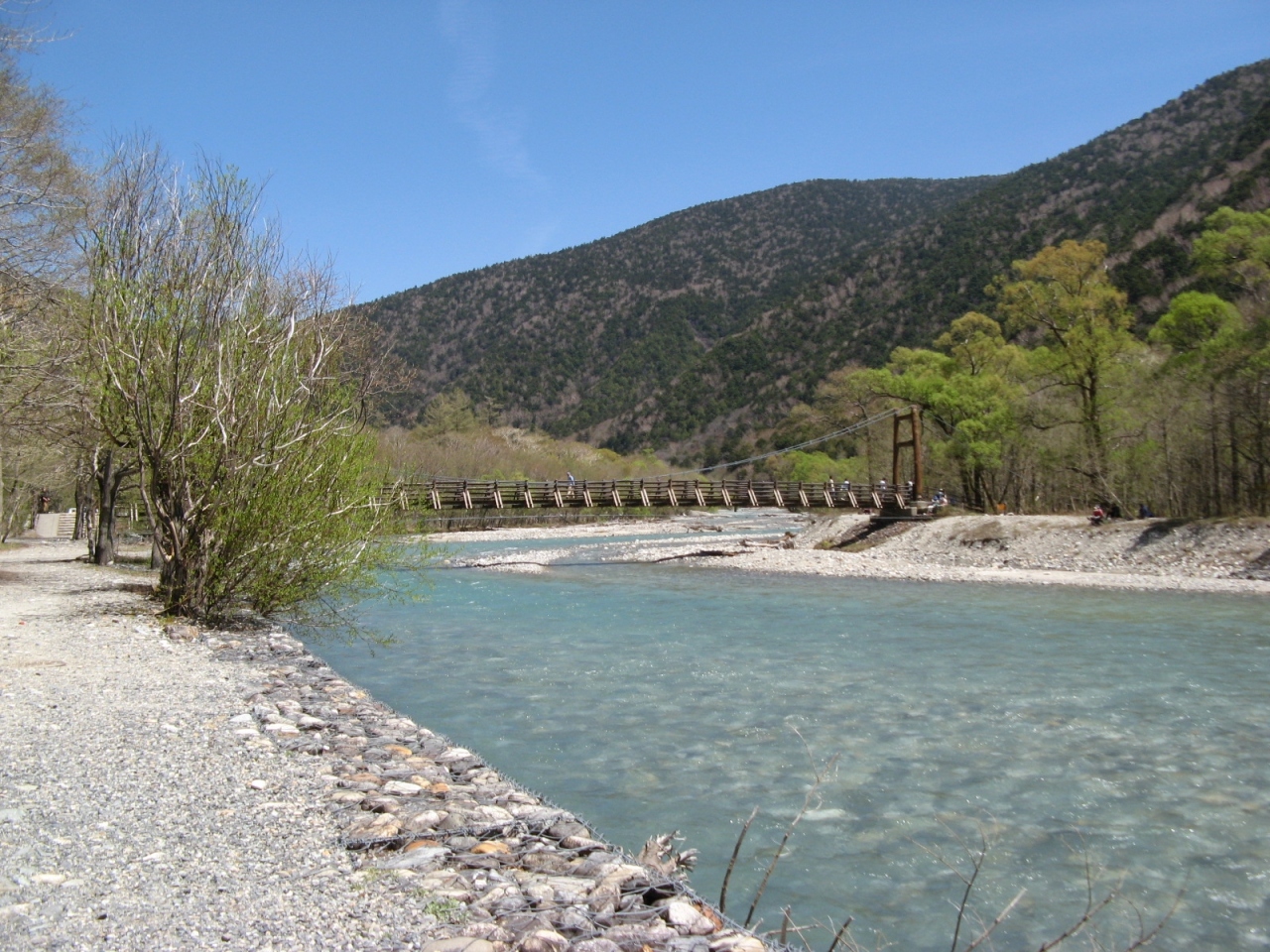 大手ツアー会社の上高地ツアーに参加し、現地で4時間あったので田代橋から明神橋付近まで上高地梓川沿いを散策しました。訪れたのが5月中旬で未だたくさんの雪が残る穂高を背に流れる梓川は絵葉書の様な景色で素晴らしかったです。
