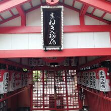 名前の通り、駿河国(静岡県)にある富士山信仰の浅間神社から勧請された神社です。創建は明応4年(1495年)ですが、現在の社殿は昭和4年に建てられたもの。大須の喧騒の中にありながら静かな境内はほっとできます。一画には“まねき稲荷”が…。商売繁盛を願う大須らしいです。鳥居前のお狐様は眼光鋭くかなり怖いですが、本殿前に鎮座するお狐様はなんと右手挙げてます。まさに招き猫ならぬ“招き狐”。かわいい…必見です。