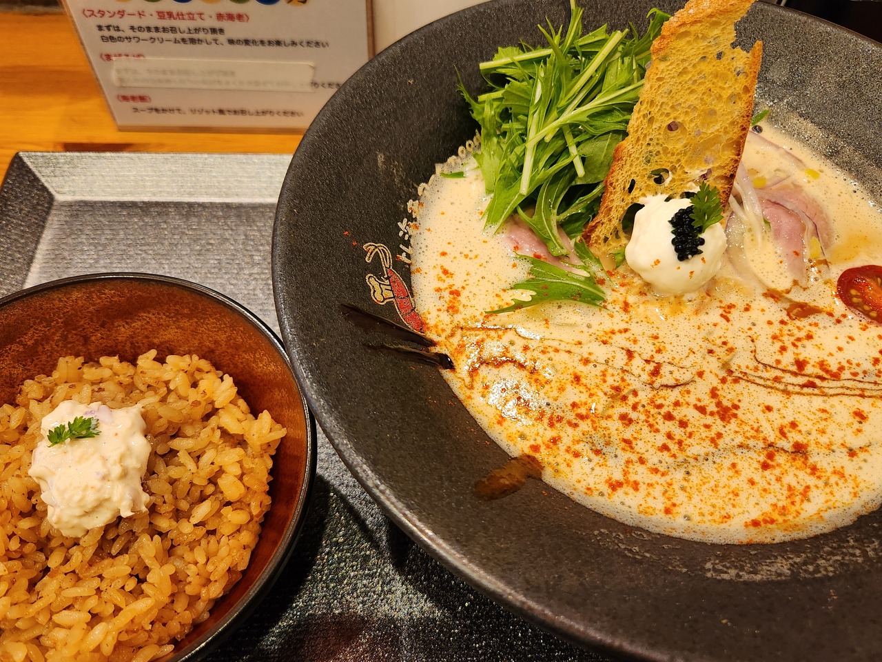 近くの人気寿司店に行ったがかなりの行列だったので、道中にあったこの店でランチ。店内には他の客は誰もおらず不安だったが、食べてみるとめちゃくちゃエビのいい香りがするスープで美味しい。手間暇をかけたラーメンで、採算合うのかなぁという心配はあるが、客の立場でいうと只々満足。