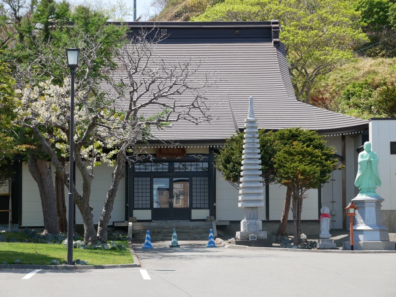 稚内駅の奥の方にあるお寺が並んでいる通りにあります(北から2番目)。