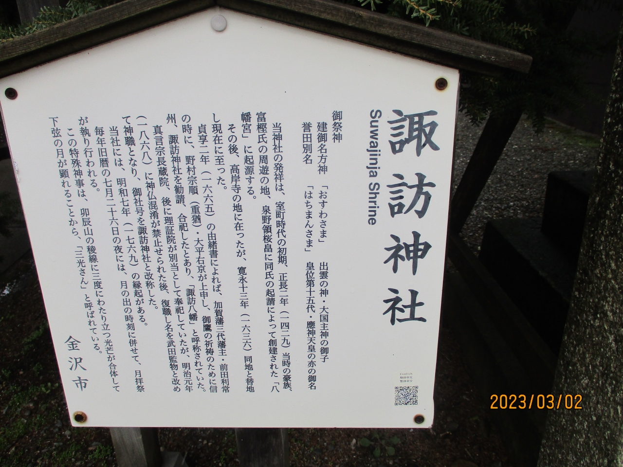 寺町巡りをしていた時に通りかかりました。寺町通り沿いにあります。鳥居を覆うように木々が茂っているのが印象的です。室町時代の初期、当時の豪族・富樫氏の周遊の地、泉野領桜畑に同氏の起請によって創建された「八幡宮」に起源しているとのことです。厳かでした。
