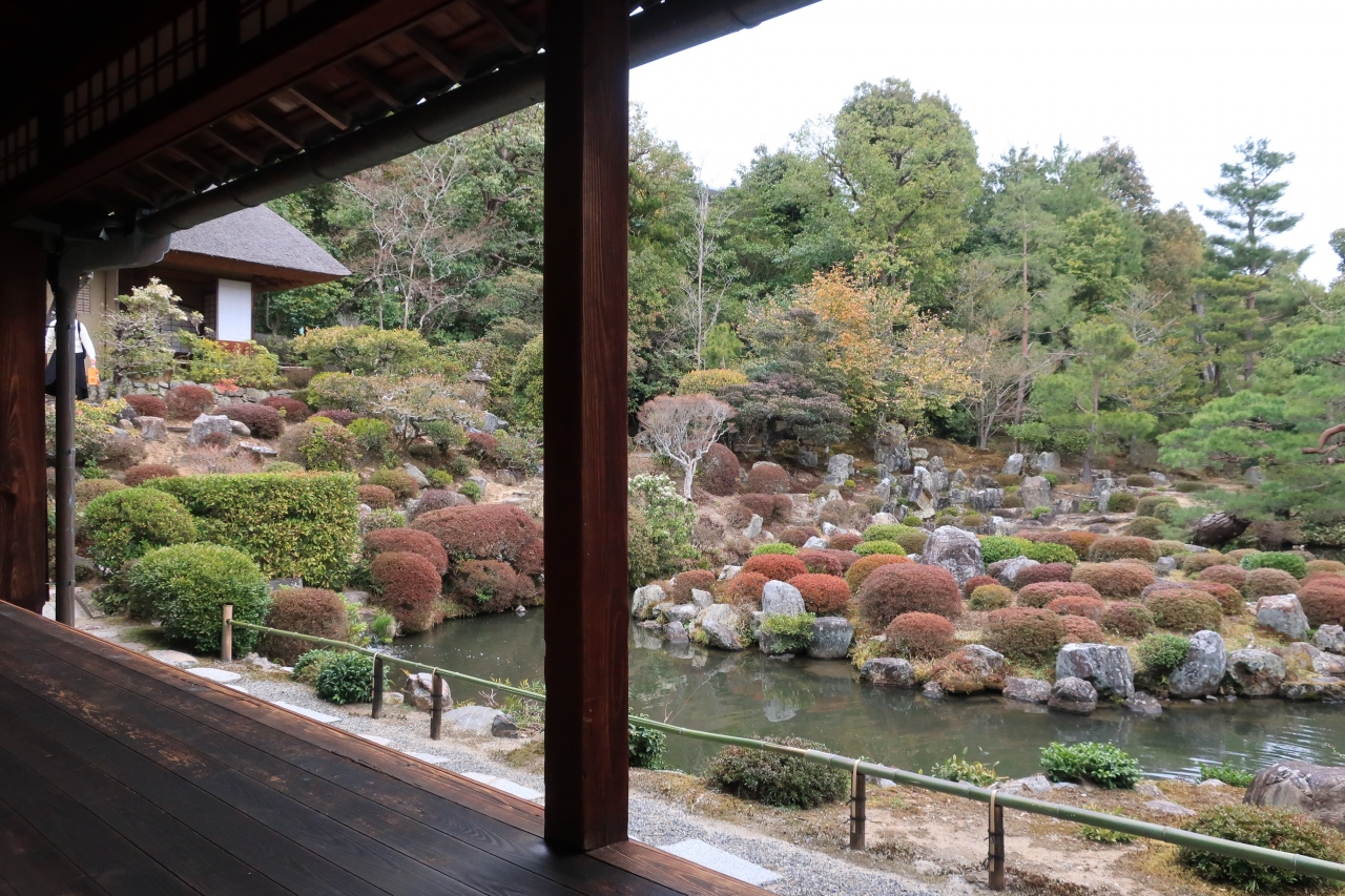 観光資源としては回遊式の庭園を巡る楽しみがある寺院だ。室町幕府を開いた足利尊氏が天龍寺の夢窓国師を招いて創建したお寺で、後に室町幕府の地にあった等持寺も吸収し、足利将軍の菩提寺となった。この日はお寺内部を拝観したが、有名な僧侶の絵のほか、足利将軍歴代の木像、池泉回遊式庭園など見どころが多い寺院だと感じた。