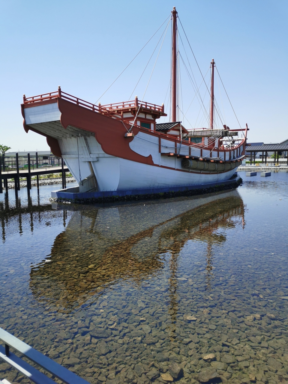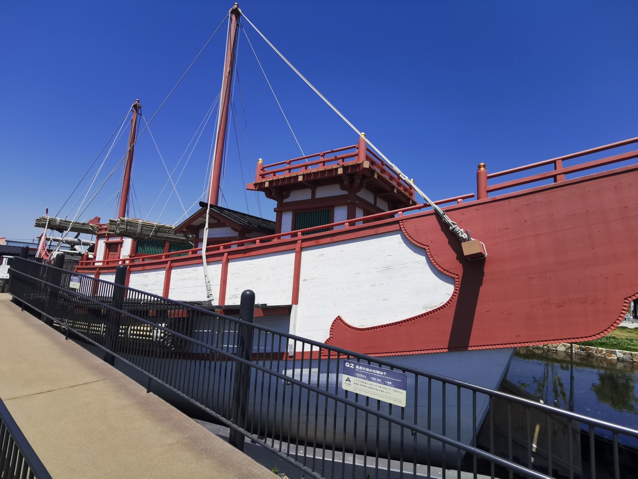 奈良観光で平城宮跡歴史公園を訪れました。歴史公園はその昔に教科書でならった平城京跡を公園にしたもの。とても広大な公園でした。公園の駐車場に入る所に復元された遣唐使船がありました。天平うまし館側から桟橋でつながっていて無料で見学できます。展示パネルが随所にあって、それぞれ勉強になりますした。意外なほど大きい船で驚きました。