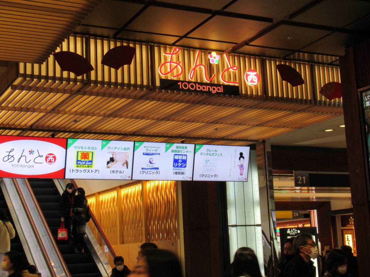 金沢駅の構内にあるショッピング施設が金沢百番街で、あんとはその金沢百番街に入っており、他にはあんと西、Rintoがあります。