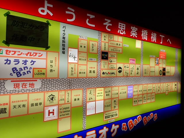 長崎の夜と言えば思案橋で、飲食店が多数あります。もともとは、露店を道路に置く計画を知った人達が一夜にして場所取りをして闇市になったという記録があるようです。細い路地に向けてお店を開いていた景色からハモニカ横丁とも呼ばれていたとのこと。