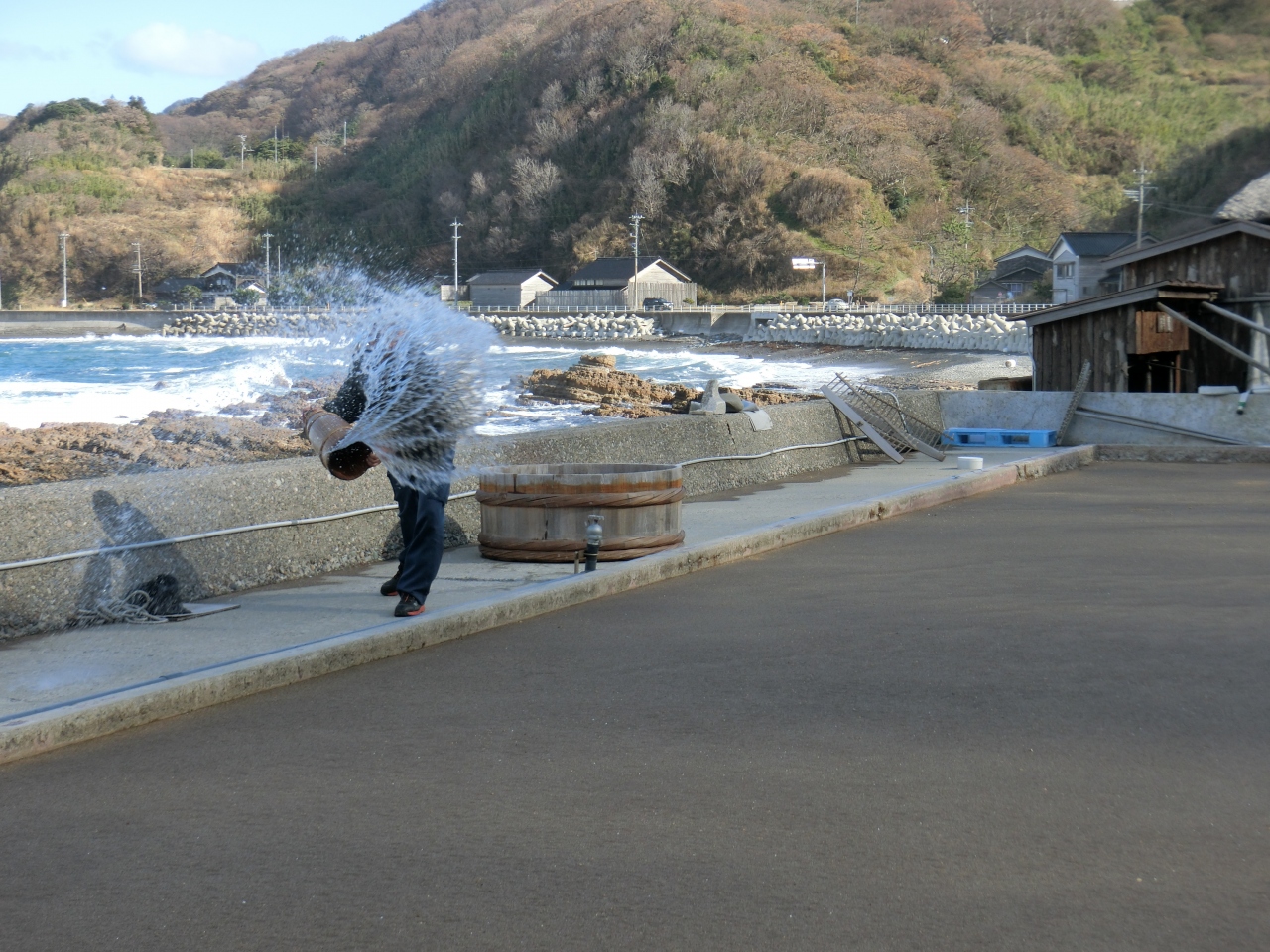 ここでは、日本で唯一残る揚浜式製塩法で塩が作られています。揚げ浜式とは、海水をくみ上げ、くみ上げた海水を塩田の砂に振りまき、乾燥させかんすいを作り、煮詰める方法で、約500年も作られてきているそうです。実際に実演してもらえました。朝ドラでもやっていたので、興味深く見ることができました。お塩もお土産に買って帰りました。
