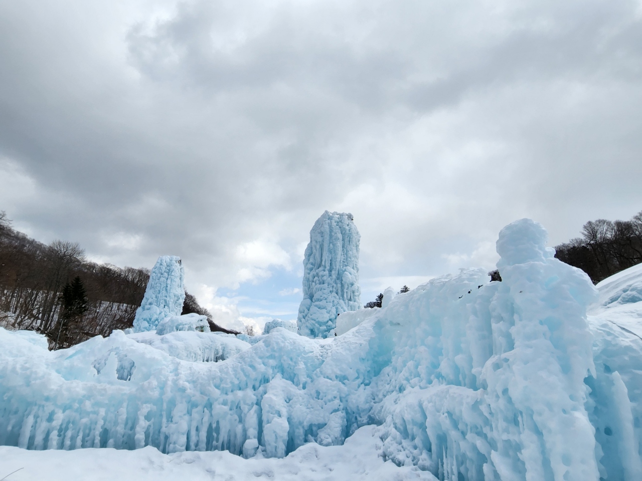 2023千歳 支笏湖氷濤まつりです。支笏湖の水をスプリンクラーで柱に吹き付けていき氷濤にしていきます。私は昼に行きましたが、夜のライトアップのほうがより魅力的だとおもいます。入場料は500円で非常にリーズナブルです。