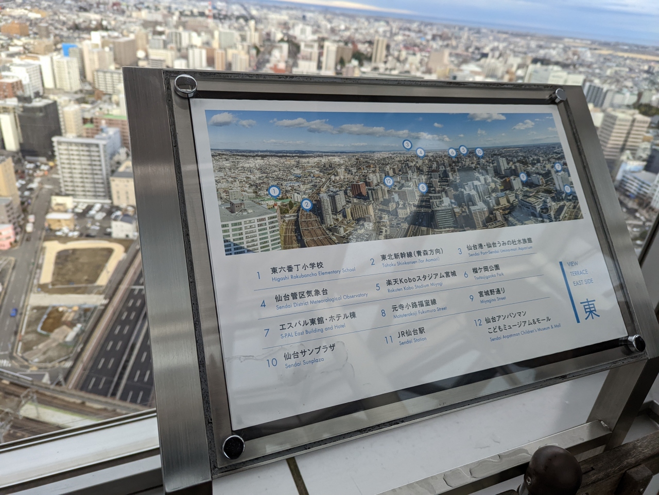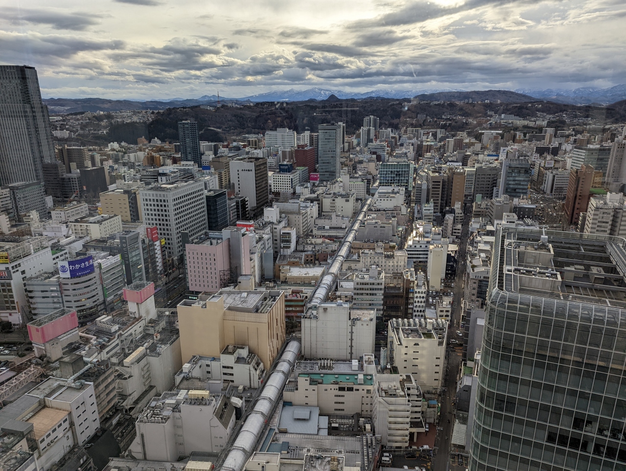 東北旅行最後の締めは仙台駅まで行き、AER展望テラスで仙台市を眺めることです。