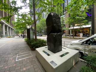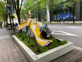丸の内の中通りの歩道部分に様々なアート作品が設置されています。平日の昼間に訪れたのですが、何となくお洒落な通り沿いに、行き交うサラリーマンと外国人観光客、そしてこれらのアート作品と通りの緑が入り混じり、何とも言えない素晴らしい景観を造っていたと思います。