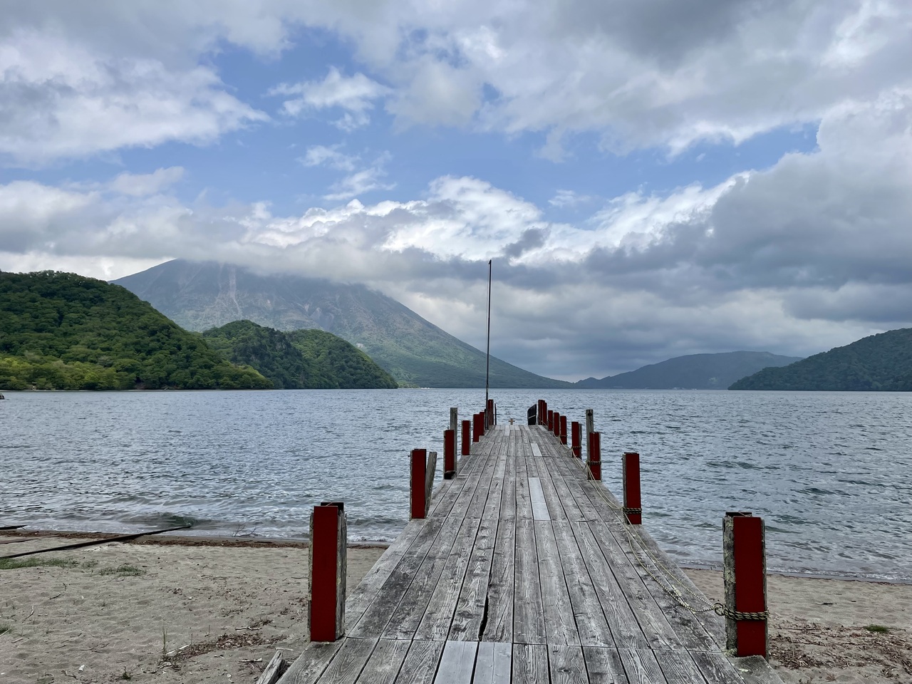 5月下旬のクリンソウが有名ですが、今年はほとんど咲いていませんでした。去年はたくさん咲いていたそうなので、ハズレ年なのかもしれません。白い浜に澄んだ水の色がブルーできれいで、中禅寺湖越しに男体山もよく見えました。