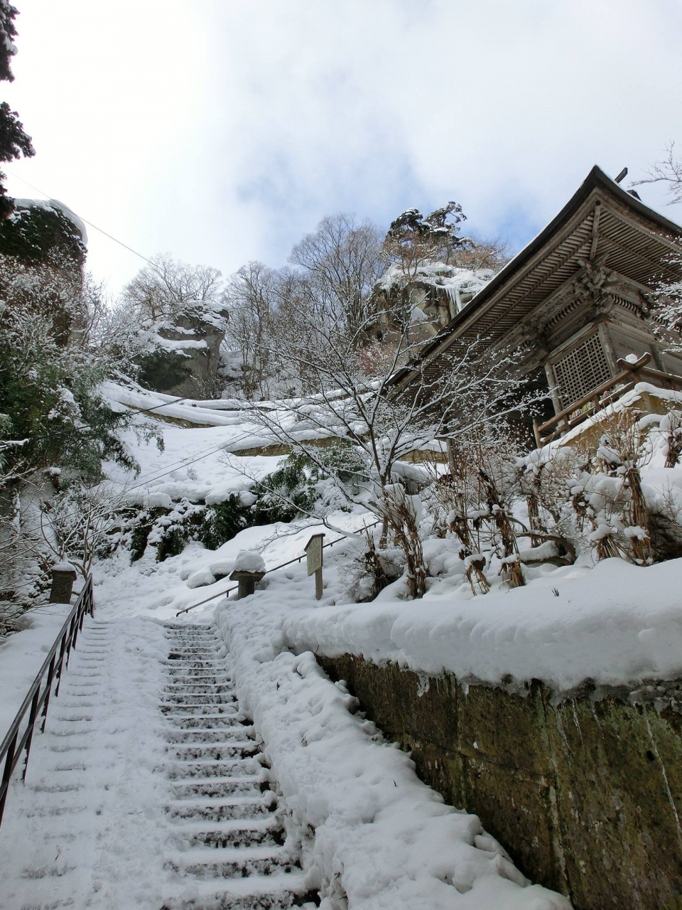 天台宗宝珠山立石寺、通称「山寺」に行ってきました。冬真っ只中に行きましたので雪と氷で足元が悪い中を一歩一歩慎重に登りました。奥の院までがおよそ800歩ですが、かなり大変でした。しかし上まで登ったからこそ見える景色も素晴らしく、頑張った甲斐があるとおもいます。下山後はそばをいただきましたが一際おいしかったです。