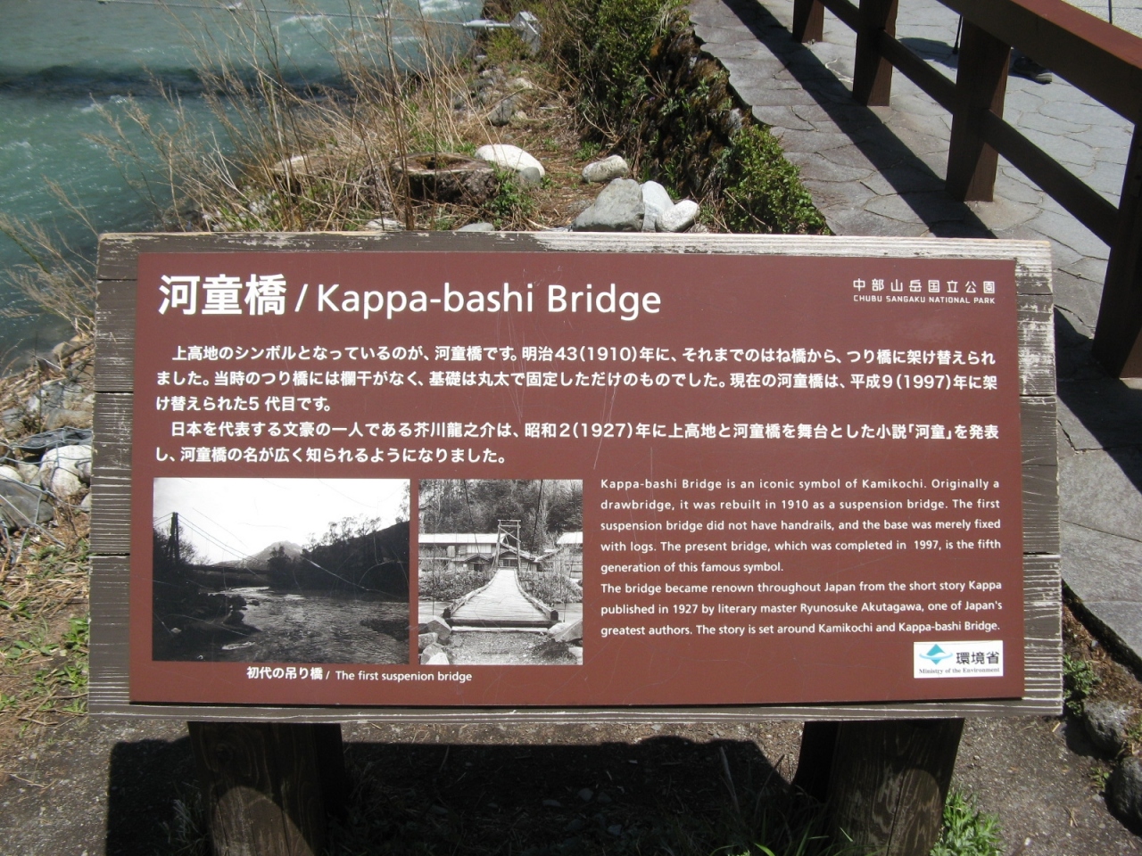 バスターミナルから歩いて5分程、上高地でもっともポピュラーな写真スポットとあってたくさんの観光客が橋の上や橋の周りで写真を撮っていました。五月の中旬に訪れたのですが、河童橋の背景には雪が残る穂高が聳え絵の様な景色を観ることができました。