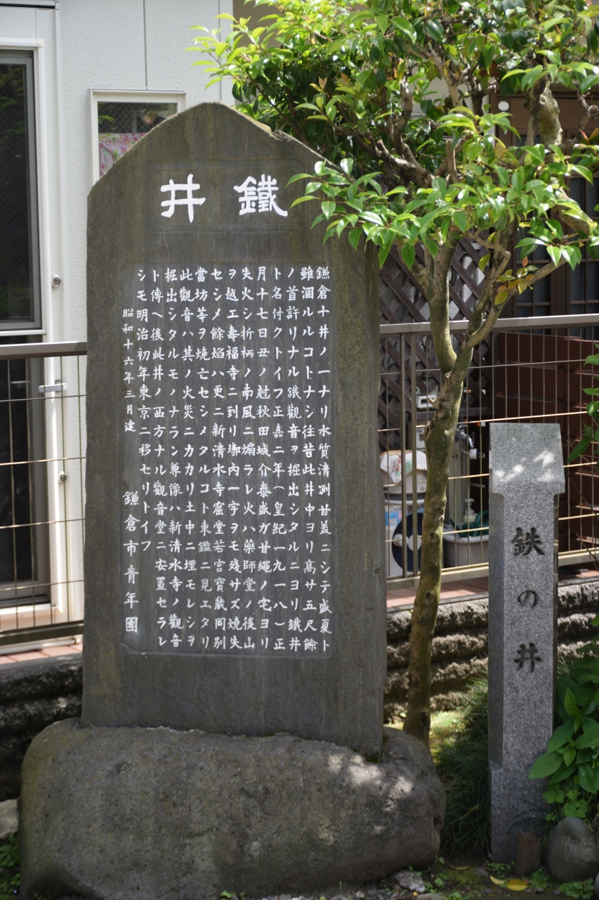 鶴岡八幡宮へ向かう道から少しずれた場所にある伝説の井戸です。井戸を掘った時に鉄の観音像が出てきたことと電設になっており、そこから鉄の井という名称がつけられています。交差点の近くにある小さな石碑で人通りは多いですが、気づかない人が多めです。