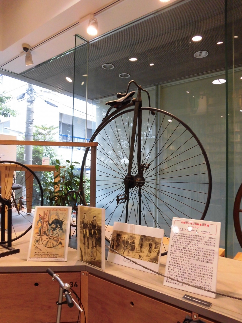 目黒駅近くの自転車総合ビルに、自転車文化センターという看板を見つけたので入ってみました。ビルの奥に進むと、自転車資料などが集められているコーナーがありました。レプリカですが、昔の自転車が展示されていたり、自転車に関しての図書も棚いっぱいに蔵書されていて、楽しく見学することが出来ました。ちなみに入場は無料でした。