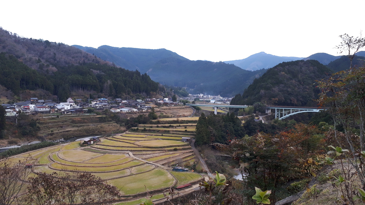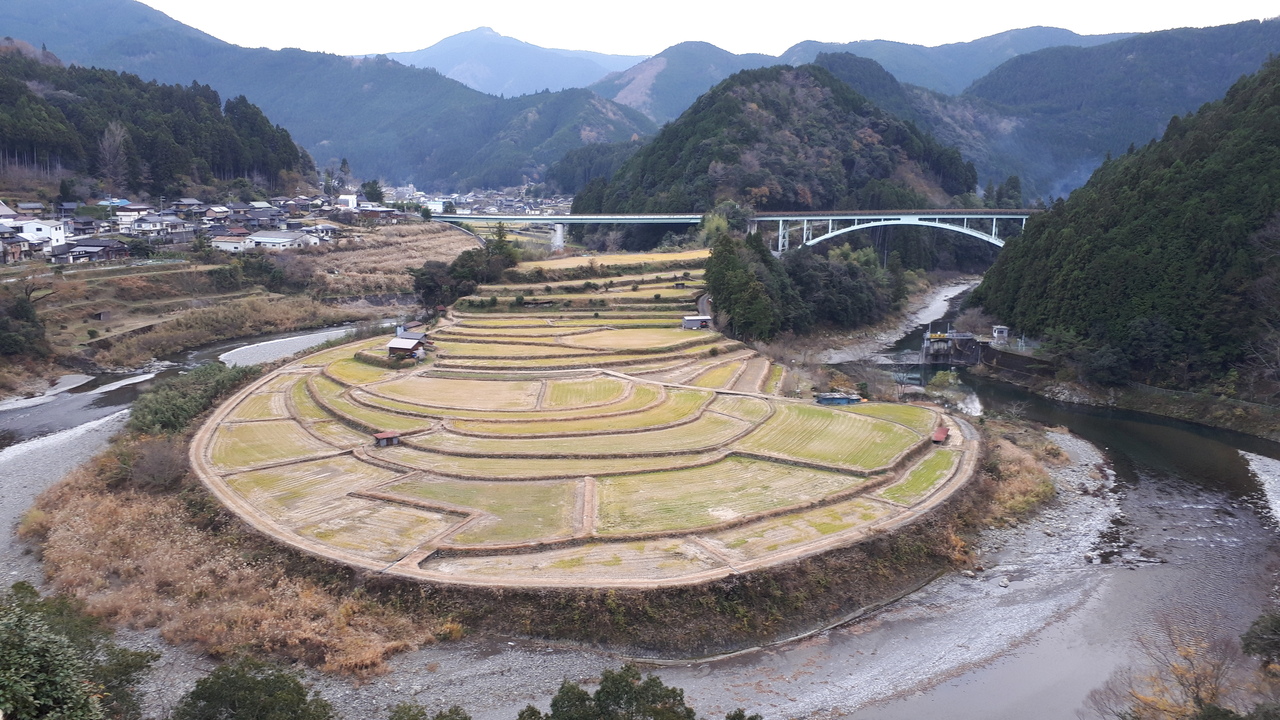 棚田そのものは立ち入り禁止で、川の対岸に展望台があります。高台から見ることもあって絶景!他の棚田とは異なる雰囲気です。