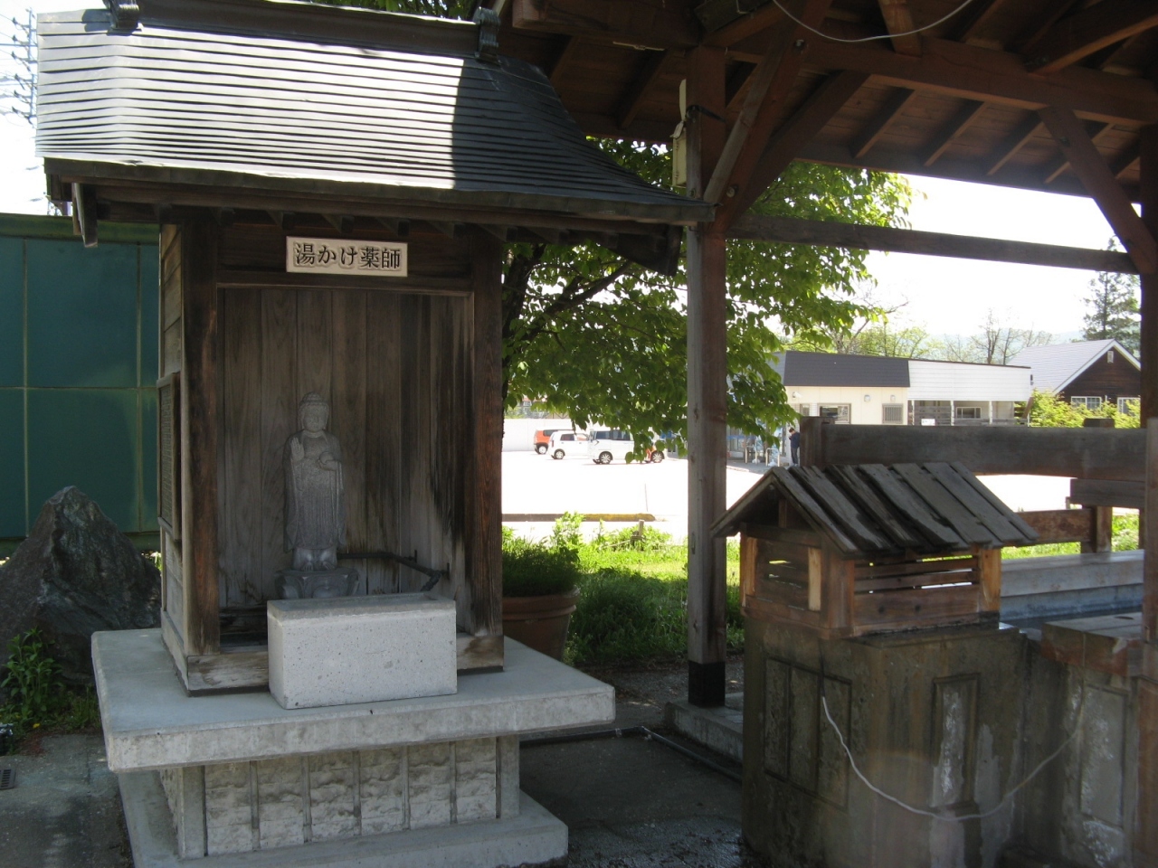 白馬八方バスターミナル近く、ローソンの向かい、八方の湯の敷地内にある無料の足湯施設です。源泉は日本屈指の強アルカリ温泉でちょっと浸かっただけでも肌がツルツル感になります。遠くに白馬の山々を望むことができて眺望が楽しめるのも魅力のひとつです。天候に左右されず利用しやすいように屋根も架かっているのでスキーや山歩きから下りたあとに浸かるのに便利です。足湯の傍には「湯かけ薬師」が祀られていて雰囲気を作っています。