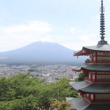 フジサンと五重塔という風景を眺めることができる公園です。特に外国人に大人気です。富士急行の下吉田駅から歩いて10分弱で入口に到着です。実際は新倉冨士浅間神社の境内です。「まずは神社で参拝を」と呼び掛けていました。神社から400段近い階段を登っていくと絶景です。