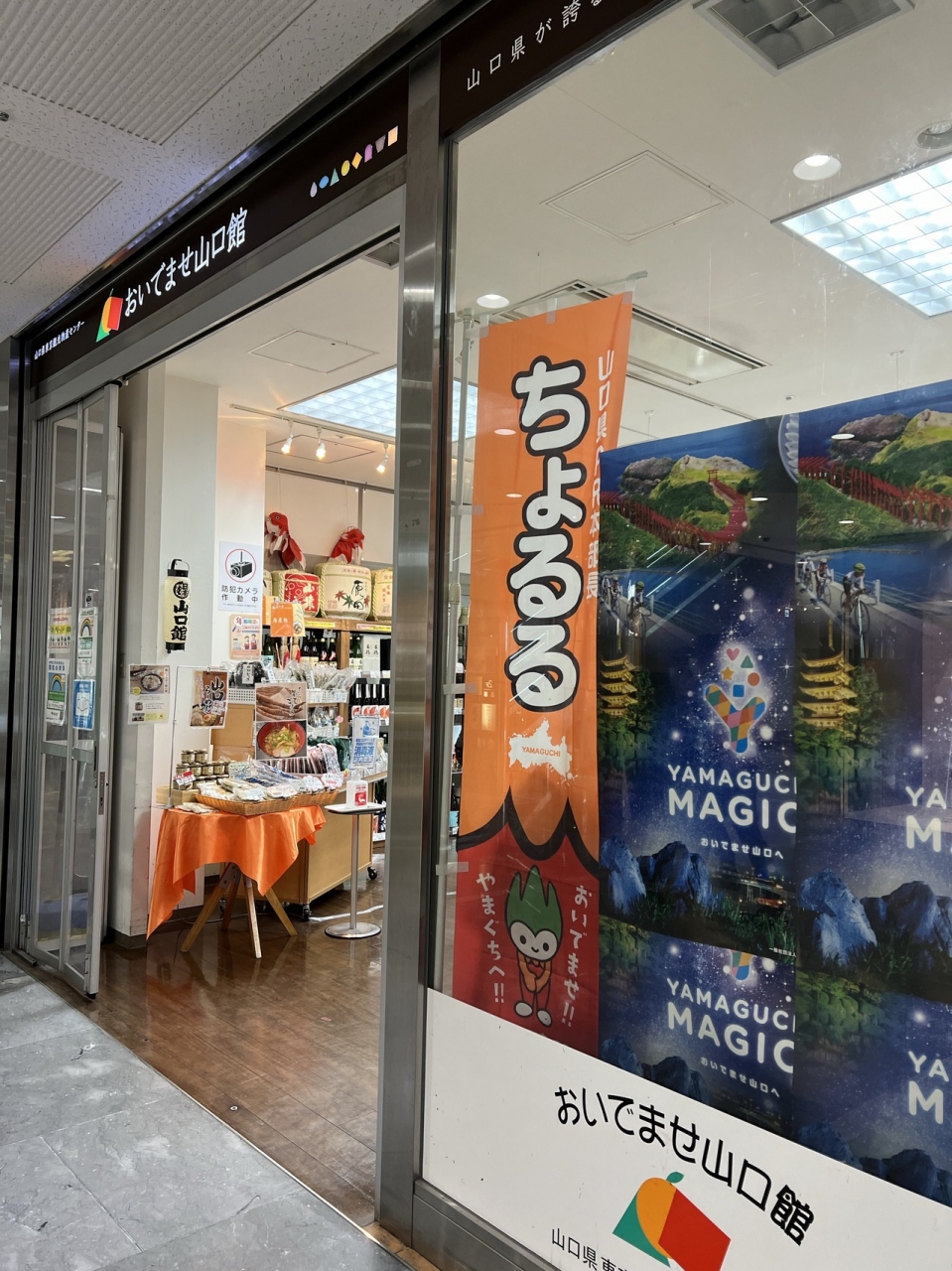 東京駅八重洲口から高島屋に通じる通り、通称「さくら通り」沿いのビル1階にあるのだが、ビル入り口すぐに存在感が大きい山梨県のワインカーヴが目立ちすぎて少々気の毒。山口県の名産特にふぐ関連の商品が目玉で買いやすい値段とサイズ、品揃え。