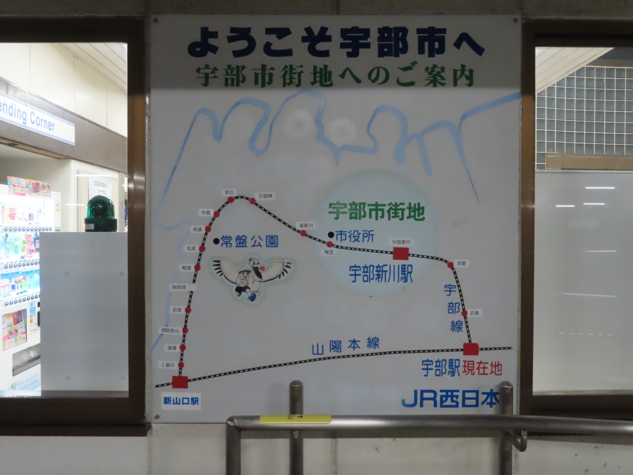 まず宇部駅から小野田駅に。で、小野田線と宇部線経由で新山口駅まで乗車しました。ぐるっと回り道したわけですが楽しかったです。宇部駅に「宇部の市街地はここじゃない」的な意味の張り紙があり。宇部新川駅はわりと大きな駅でした。