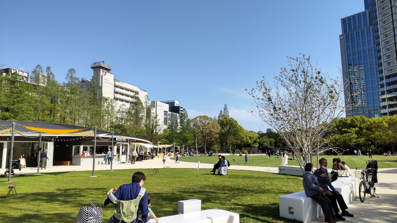 三宮にある身近な公園が2023年4月にリニューアルし、芝生広場やカフェが出来ました。
